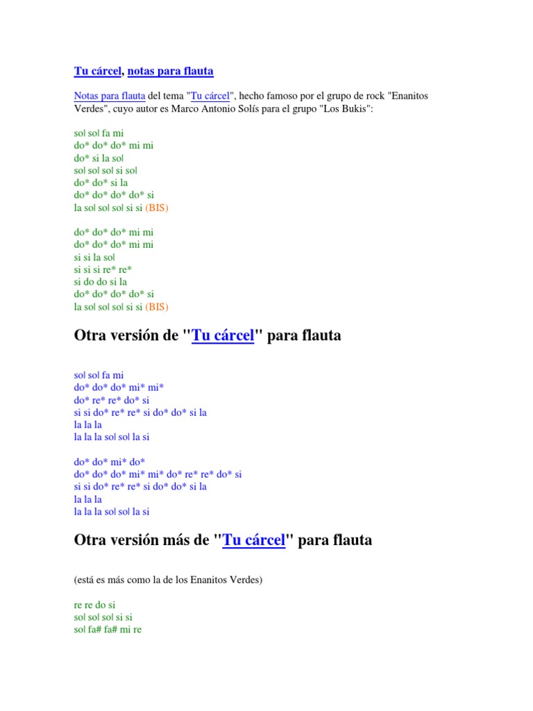 Enanitos Verdes Tu Carcel Letra Y Acordes Pdf